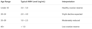 AMH levels naturally decline with age, but the range varies for each woman and should be interpreted by a fertility specialist.